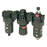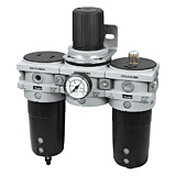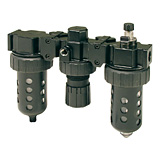 Two-unit and three-unit close nippled and modular filter regulator and lubricator (FRL) combination units provide attractive, versatile air preparation solutions. Parker offers a range of solutions including various pipe sizes, lightweight corrosion-resistant bodies, durable piston or diaphragm design regulators and fingertip lubricator adjustment.