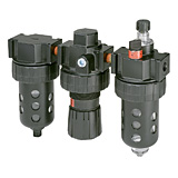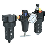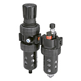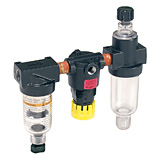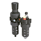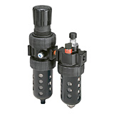 Two-unit and three-unit close nippled and modular filter regulator and lubricator (FRL) combination units provide attractive, versatile air preparation solutions. Parker offers a range of solutions including various pipe sizes, lightweight corrosion-resistant bodies, durable piston or diaphragm design regulators and fingertip lubricator adjustment.